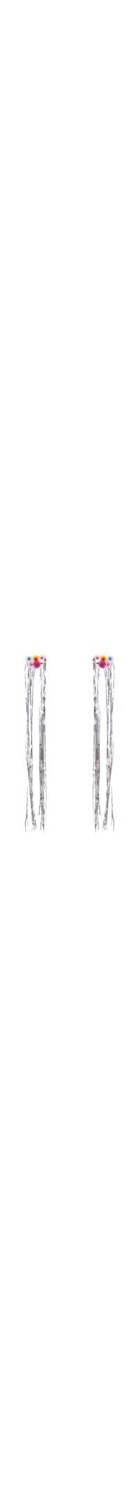 A ombreira prateada é produzida em EVA. A peça possui superfície com aplicação figurativa de flores sintéticas em cores contrastantes, tira de elástico aplicada na parte interna e aplicação de franjas em material metalizado.