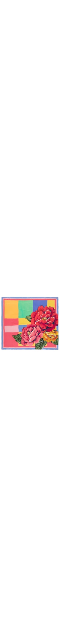 O panneaux azul é confeccionado em tecido leve sem elasticidade. A peça possui tamanho grande, formato quadrado e mix de estampas em cores contrastantes.