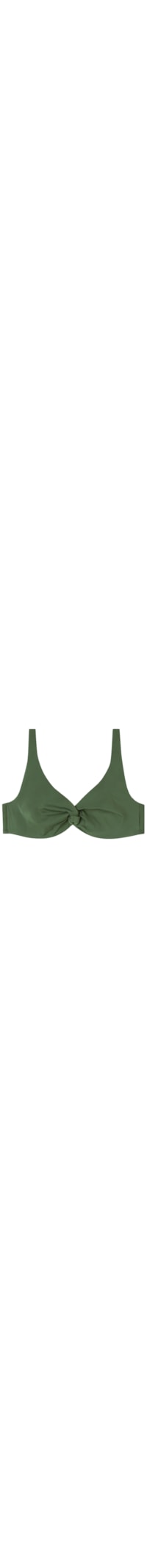 Parte de cima de biquíni balconette não almofadada e com aro, com um elegante nó central. A estrutura das copas e o corte lateral amplo, com barras de reforço, oferecem ótimo suporte para seios generosos. Internamente, as copas são revestidas com um tecido de tule para maior suporte. O tecido macio proporciona leveza e conforto sobre a pele. Alças reguláveis e removíveis nas costas, podendo ser cruzadas atrás ou amarradas no pescoço. As alças podem ser enganxadas em vários pontos no contorno das costas para um ajuste personalizado. Fecho posterior com gancho e ajuste duplo para melhor adaptação ao tórax.