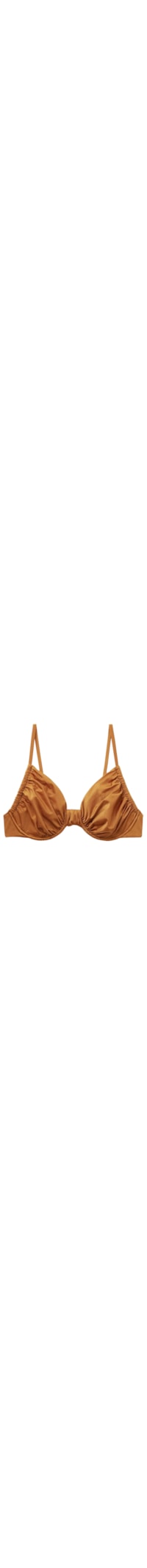 Parte de cima de biquíni balconette sem bojo e com aro para um ajuste perfeito. As taças abraçam e sustentam o busto, com a opção de ajuste através do cordão lateral. Ideal para seios fartos, possui um design elegante com tecido brilhante de efeito seda, detalhes franzidos e ponteiras douradas. As alças são ajustáveis e o fecho possui colchetes de regulagem dupla para maior conforto.