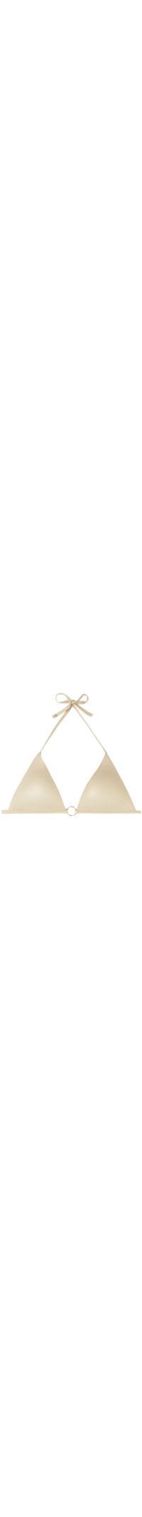 Parte de cima de biquíni cortininha fixa com copas almofadadas e graduadas, sem aro, que dão um efeito de volume e realçam a linha do decote. Pormenor moda de argola isenta de níquel ao centro do peito. As tiras compridas e finas por baixo do seio podem ser cruzadas nas costas e atadas à frente. Tecido em microfibra brilhante shine. As alças possuem uma abertura em anel na extremidade que permite inseri-las na alça inferior de apertar atrás ou atá-las na zona da nuca. Aperto posterior com laço fino.