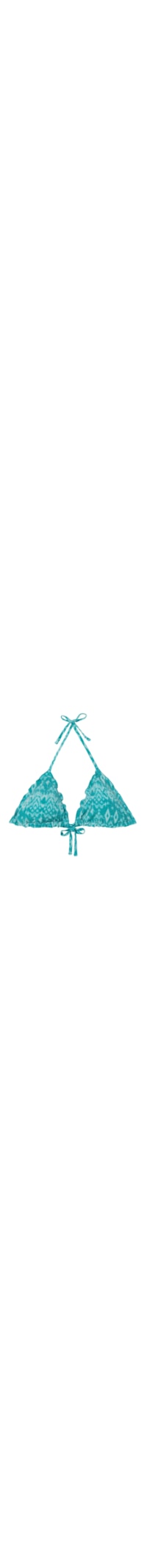 Selecione o tamanhoParte de cima de biquíni em formato de triângulo cortininha, com enchimento removível e sem aro, proporcionando um efeito natural. Com um elegante padrão étnico que evoca as cores do mar e um toque de lurex, este biquíni é perfeito para quem busca estilo e conforto. As alças possuem uma abertura em anel na extremidade, permitindo que sejam inseridas na alça inferior de apertar nas costas ou amarradas na nuca. O aperto posterior é feito com um laço fino, garantindo um ajuste personalizado.