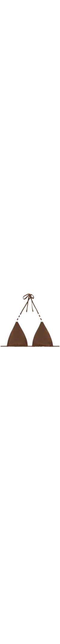 Selecione o tamanhoParte de cima de biquíni triangular sem aro e com enchimento removível. Tecido macio adornado com fio lamê brilhante e argolas douradas sem níquel. As alças possuem ilhós nas extremidades para serem engatadas na faixa traseira ou amarradas ao redor do pescoço. Amarração fina nas costas.