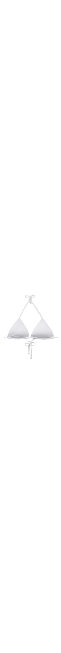 Parte de cima de biquíni cortininha, com bojo removível e sem aro, para um efeito natural. Confeccionada em tecido extremamente macio, proporciona uma sensação de leveza e conforto sobre a pele. As alças possuem abertura em anel na extremidade, permitindo encaixá-las na tira inferior para amarrar nas costas ou atar na nuca. Fechamento posterior com amarração fina.