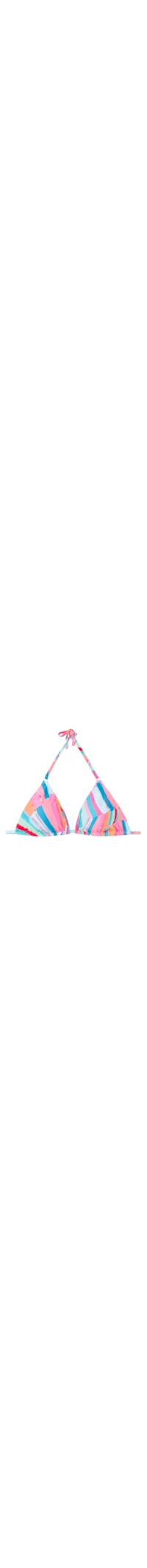 Selecione o tamanhoParte de cima de biquíni em formato triângulo cortininha, com copas removíveis e sem aro para um efeito natural. Apresenta um estampado vibrante em cores neon e detalhes de pequenos anéis dourados sem níquel. As alças possuem aberturas em anel nas extremidades, permitindo serem inseridas na alça inferior para amarração nas costas ou atadas na nuca. Fecho posterior com tira fina.