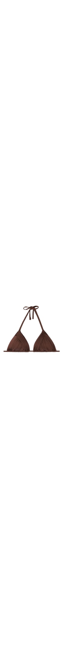Parte de cima de biquíni em formato de triângulo cortininha sem aro e com enchimento removível nas copas. Caracteriza-se pelo tecido brilhante e por um jogo de franzidos nas copas. As alças possuem uma abertura em forma de anel na extremidade, permitindo que sejam inseridas na alça inferior para apertar atrás ou amarradas na zona da nuca. Fechamento traseiro com laço fino.