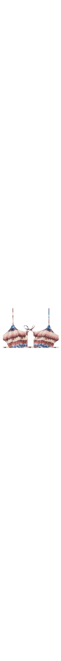 Parte de cima de biquíni em formato de top, sem aro e sem bojo para um efeito natural. Caracterizado por uma estampa com efeito tie-dye e um recorte no centro do seio. Fechamento posterior com laço fino.