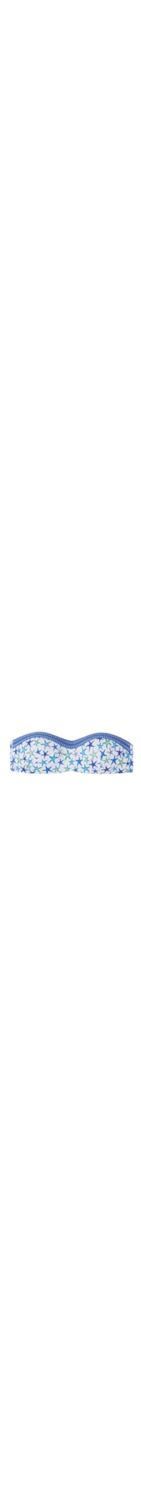Parte de cima de biquíni estilo tomara-que-caia, com bojo graduado aumentando o volume do seio e sem aro para garantir o máximo conforto. As barras de reforço laterais garantem suporte maior ao seio. Caracteriza-se por uma estampa de estrelas-do-mar, paêtes brilhantes e uma bonita passamanaria em crochê na borda.