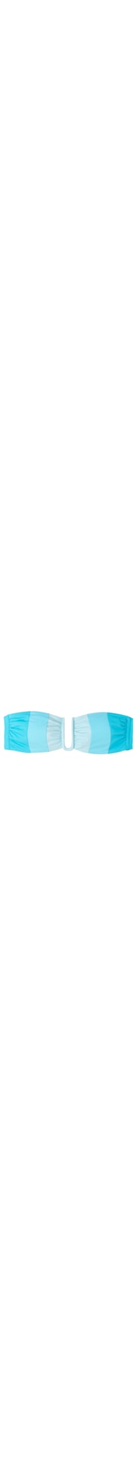 Parte de cima de biquíni em formato tomara-que-caia, com copas ligeiramente almofadadas e sem aro para um efeito natural. As barras de reforço nas laterais proporcionam um suporte adicional ao peito. Destaque para o detalhe do aro em forma de U no centro do seio. O tecido é em microfibra macia colorblock tom sobre tom. As alças são removíveis e o fechamento ocorre na parte de trás.