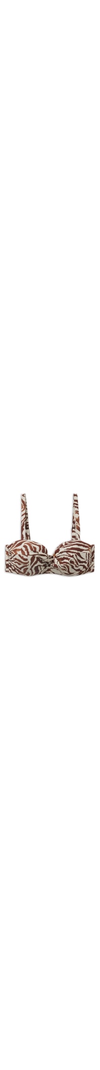 Parte de cima de biquíni modelo tomara que caia levemente acolchoada, com aro e hastes laterais para garantir ótimo suporte, ideal para seios maiores. O detalhe cruzado no centro realça o decote. Confeccionada em tecido com o sofisticado padrão Brown Zebra. Alças reguláveis e removíveis. Fecho posterior com gancho e dupla regulagem.