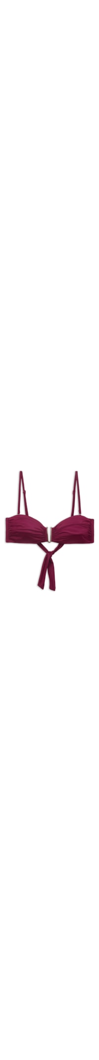 Parte de cima de biquíni estilo tomara que caia com copas ligeiramente almofadadas. As barras de reforço laterais garantem um bom suporte ao seio. Caracteriza-se pelo tecido brilhante e um acessório dourado no centro do seio. Alças reguláveis e removíveis. Fechamento posterior com laço.