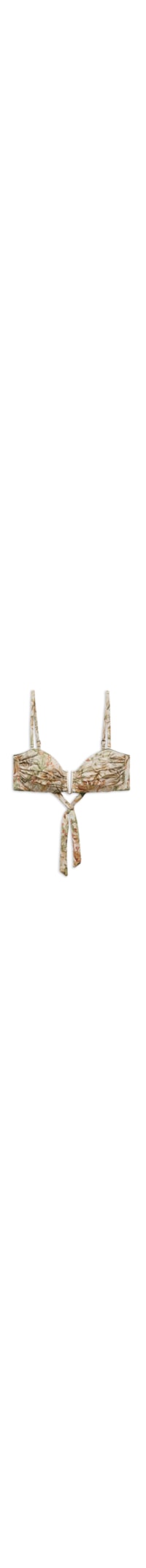 Parte de cima de biquíni tomara-que-caia com copas levemente almofadadas. As laterais com reforço oferecem suporte extra ao seio. Apresenta uma estampa de folhagem sofisticada e um detalhe dourado no centro do decote. Alças reguláveis e removíveis. Fechamento posterior com laço.