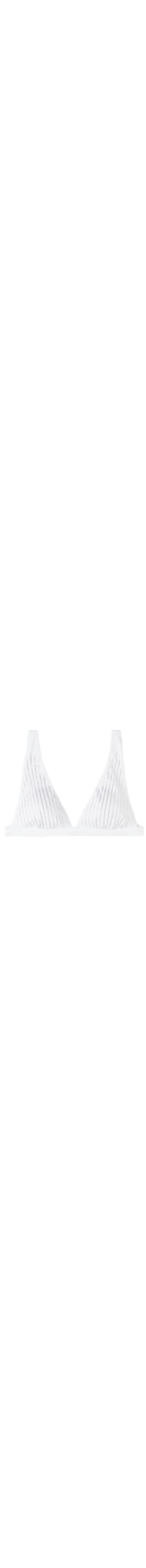 Parte de cima de biquíni no formato de triângulo, sem aros e com bojo. A área abaixo do peito apresenta um elástico reforçado para proporcionar maior apoio. Feito de microfibra macia decorada com strass brilhantes dispostos em riscas verticais. As alças são ajustáveis e removíveis, permitindo que sejam cruzadas nas costas ou amarradas na área do pescoço. O fechamento ocorre na parte posterior com um laço.