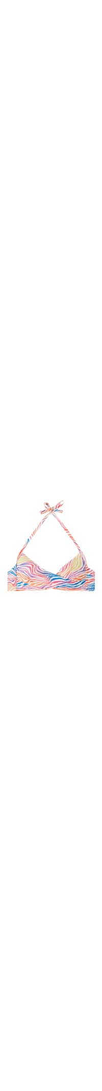 Parte de cima de biquíni em formato de triângulo fixo, sem aro e com bojos almofadados e graduados. As copas são ligeiramente almofadadas nos tamanhos 40 e 42. Destaca-se pelo detalhe cruzado, criando um efeito que valoriza a linha do decote. O modelo é caracterizado por uma estampa animal colorida. As alças têm um ilhó na extremidade que permite amarrá-las nas costas ou fazer um laço na zona da nuca. O fechamento traseiro é com um laço.