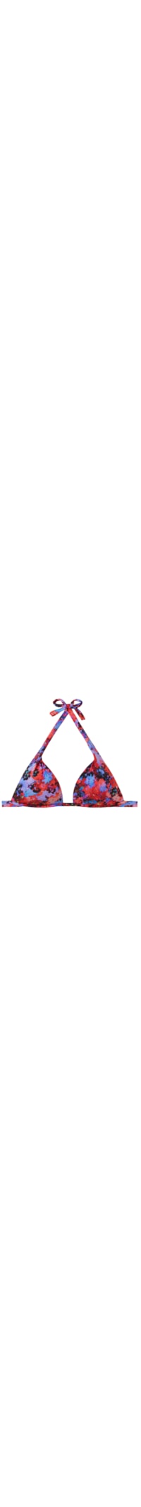 Selecione o tamanhoParte de cima de biquíni em formato triangular fixo, sem aro, com copas almofadadas graduadas que criam um efeito de volume e realçam o decote. Apresenta um alegre padrão floral abstrato. As alças possuem uma abertura em anel nas extremidades, permitindo que sejam inseridas na alça inferior para amarrar nas costas ou atar na nuca. Fechamento posterior com laço.