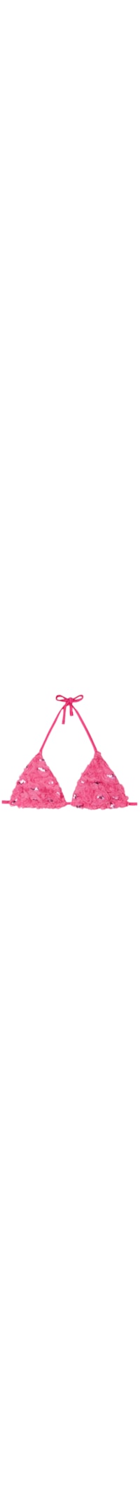 Parte de cima de biquíni em formato de triângulo deslizante e sem aro para um efeito natural. É possível inserir bojo no interior das copas para moldar os seios e aumentar o volume do seio (vendidas separadamente, modelo CZM104). O modelo apresenta uma decoração com flores 3D adornadas por paetês brilhantes tom sobre tom. As alças têm um ilhó na extremidade que permite amarrá-las nas costas ou com um laço na nuca. Fechamento posterior com laço fino.