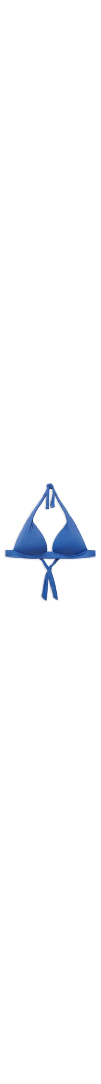 Parte de cima de biquíni em formato triângulo fixo, sem aro, com copas almofadadas e graduadas para um efeito de volume que realça a linha do decote. O tecido muito macio proporciona uma sensação de leveza e conforto sobre a pele. As alças têm uma abertura em anel na extremidade, permitindo que sejam ajustadas na alça inferior nas costas ou amarradas na nuca. Fecho posterior com laço.