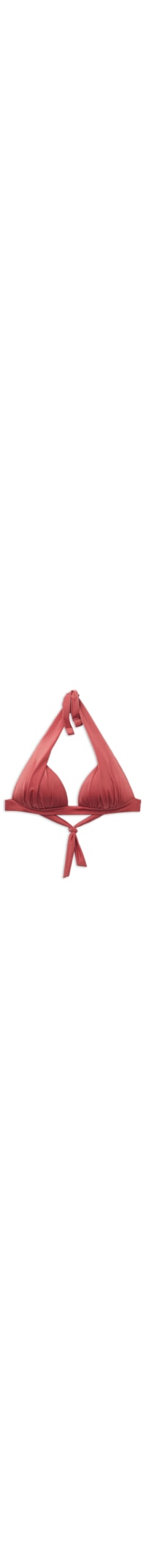 Parte de cima de biquíni no modelo triângulo fixo, sem aro, com bojo graduado que proporciona volume e realça o decote. O tecido brilhante com efeito de seda é decorado com franzidos delicados. As alças possuem argola nas extremidades, permitindo que sejam presas na alça inferior das costas ou amarradas na nuca. Fechamento posterior com laço.