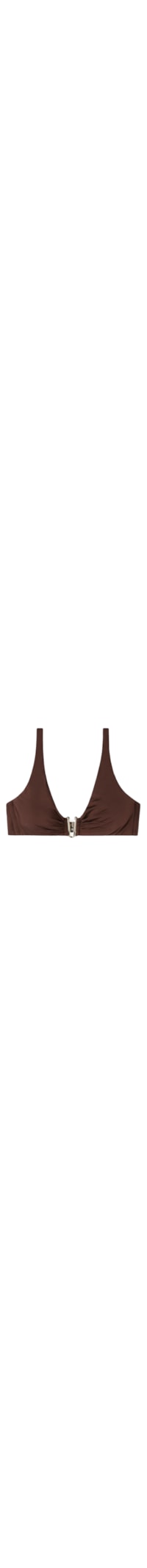 Parte de cima de biquíni estilo sutiã sem aro ou enchimento para um efeito natural. As barbatanas laterais proporcionam bom suporte. O estilo apresenta tecido brilhante e um acessório dourado na ponte. Fechamento traseiro com presilha e ajustadores duplos.
