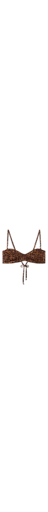 Parte de cima de biquíni estilo top, sem aro e sem bojo, para um efeito natural. Possui corte minimalista que valoriza a silhueta e apresenta uma elegante estampa de folhagem. O tecido brilhante com efeito de seda, adornado com delicados detalhes dourados, transmite uma sensação sofisticada de luxo discreto. Alças ajustáveis e fechamento com laço fino.