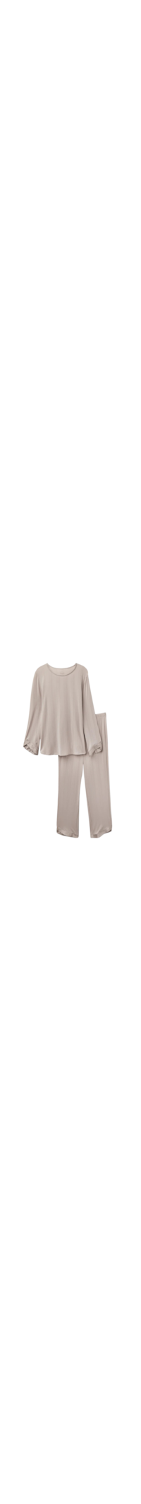 Pijama comprido confeccionado em modal canelado macio, adornado com elegantes acabamentos em cetim. As mangas e a bainha da calça apresentam um corte arredondado em formato de pétala.