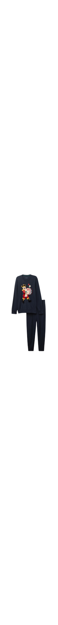 Pijama longo em interlock de algodão, com blusa que apresenta um patch central com bordado em veludo inspirado no Quebra-Nozes.