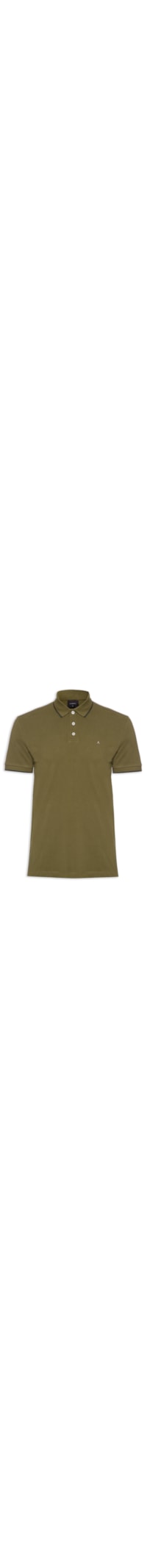 A polo verde é confeccionada em malha de algodão de baixa elasticidade. A peça solta ao corpo possui gola esporte canelada com abotoamento, frontal, mangas curtas com acabamento em ribana, logo da marca bordado na altura do tórax, comprimento médio.
