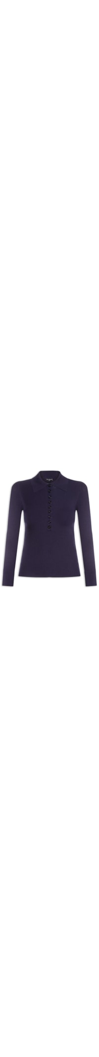 A blusa azul é confeccionada em malha canelada com média elasticidade. A peça justa ao corpo possui gola esporte, mangas longas, ombros regulares, textura canelada, tag emtalizada da marca aplicada na parte posterior e fechamento frontal por botões.