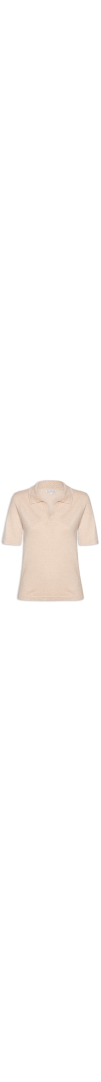 A polo bege é confeccionada em tricot com alta elasticidade. A peça justa ao corpo possui gola esporte com recorte em V e superfície texturizada com detalhe de perfuros, mangas curtas e tag da marca metalizada plicada na parte posterior.