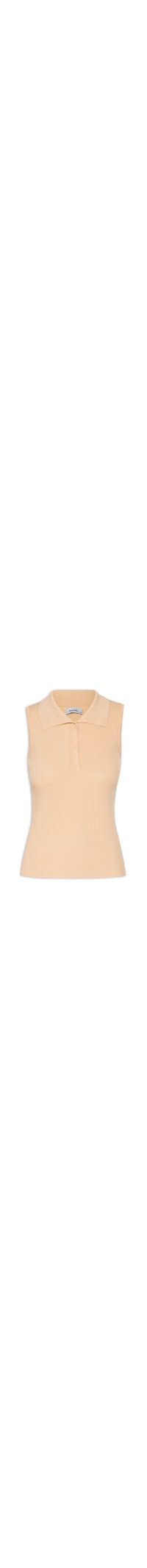 A polo bege é confeccionada em tricot de alta elasticidade. A peça justa ao corpo, possui gola esporte com acabamento canelado e abotoamento frontal.