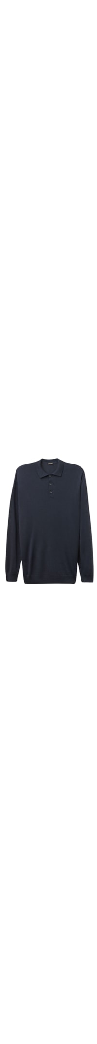 Camiseta Polo De Manga Comprida Em Algodão Mercerizado - Azul