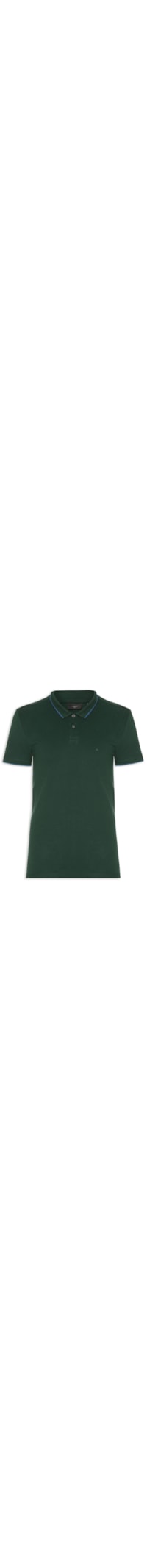 A polo verde é confeccionada em malha piquet com média elasticidade. A peça solta ao corpo de modelo regular possui gola esporte com fechamento por botões, mangas curtas, logo da marca aplicado em cor contrastante na parte frontal do tórax e acabamento canelado e padronagem de frisos em cores contrastantes na gola e punhos.