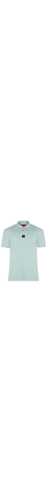 A polo verde é confeccionada em malha de algodão com baixa elasticidade. A peça solta ao corpo possui gola esporte com abotoamento e acabamento canelado, mangas curtas, tag da marca aplicada em metal e borracha na parte frontal na área do tórax.