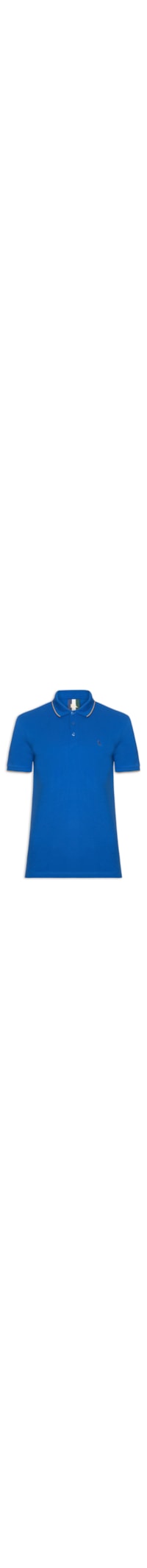 A polo azul é confeccionada em malha com baixa elasticidade. A peça possui gola esporte com botões aplicados, mangas curtas, acabamento canelado e detalhe de vivo em cores contrastantes na gola e na manga e logo da marca bordado em cor contrastante na altura do tórax.