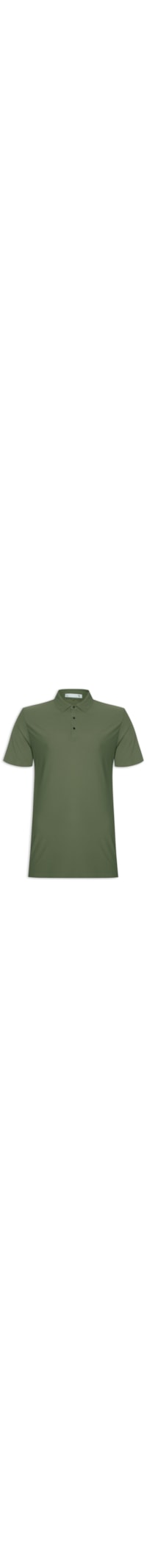 A polo verde é confeccionada por malha de poliamida com média elasticidade. A peça solta ao corpo possui gola polo com fechamento por botões, mangas curtas e fendas laterais.