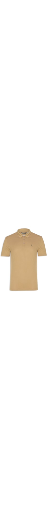 A polo bege é confeccionada em malha piquet com baixa elasticidade. A peça solta ao corpo possui gola esporte com botões aplicados, mangas curtas e logo da marca bordado na altura do tórax.