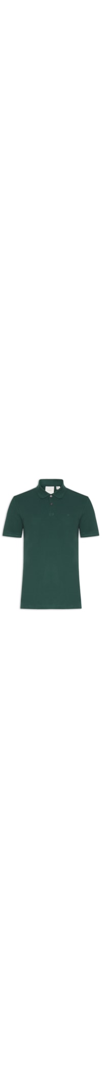 A polo verde é confeccionada em malha leve com média elasticidade. A peça solta ao corpo possui gola esporte com botões aplicados na gola, mangas curtas, logo da marca bordada na altura do tórax, pequena fendas laterais e acabamento canelado.