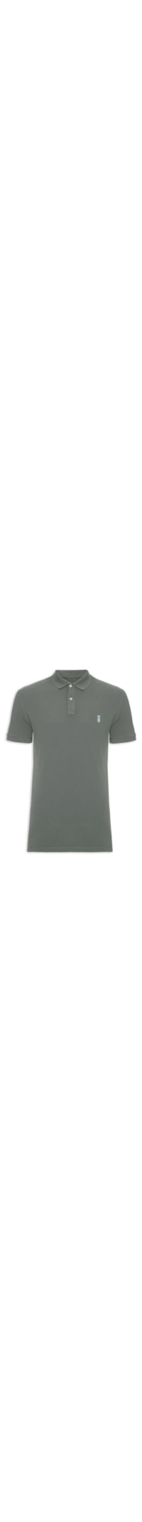 A polo cinza é confeccionada em malha de algodão sem elasticidade. A peça solta ao corpo possui gola esporte com fechamento por dois botões, mangas curtas, acabamento canelado nas golas e punhos, logo da marca bordado no lado esquerdo frontal em cor contrastante, leve abertura em V nas laterais da barra.