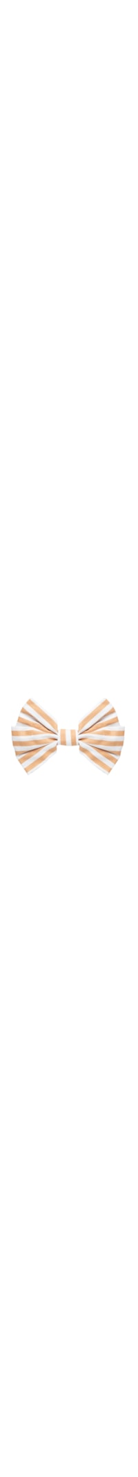 A presilha bege é produzida em material têxtil. A peça possui tamanho médio, formato de laço, padronagem listrada em cor contrastante e fechamento posterior por presilha metálica.