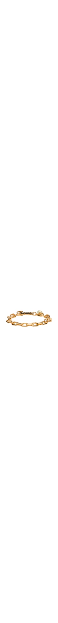 O bracelete dourado é produzido em metal com banho de alta cobertura em ouro 18K. A peça possui espessura média, tag da marca aplicada em pingente e fechamento por fecho lagosta
