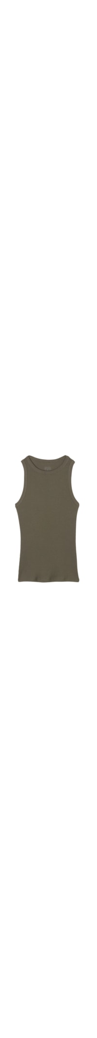Regata confeccionada em algodão supima canelado, possui gola redonda estilo remador. Corte justo.A modelo mede 1,75 m de altura e veste o tamanho P.