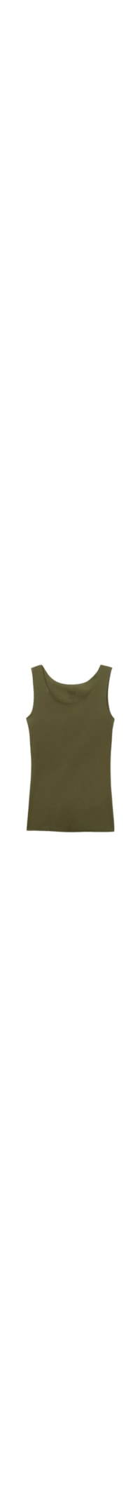 Regata de alças largas em algodão elástico sem ourela, com decote redondo. A modelo tem 1,79 m e veste o tamanho P