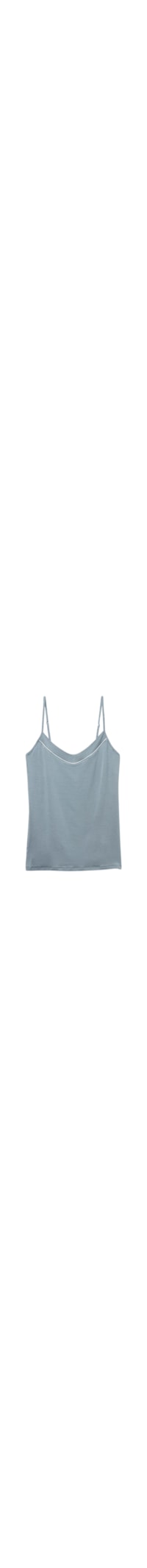 Regata em micromodal com alças finas. A peça possui decote em V, enriquecido por um detalhe em cetim.