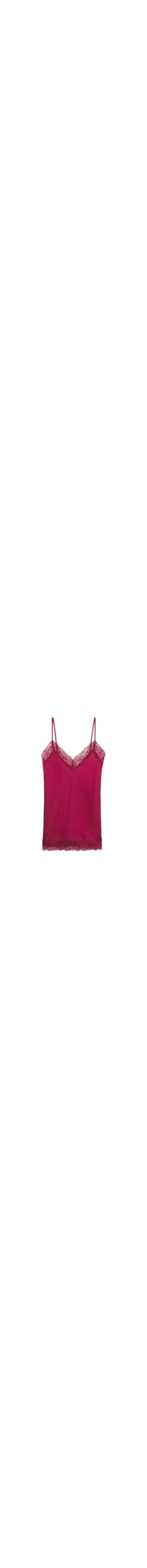 Selecione o tamanhoRegata em seda com decote em V, alças finas ajustáveis e detalhes em renda no decote e na bainha. Perfeito como lingerie ou com um casaco.