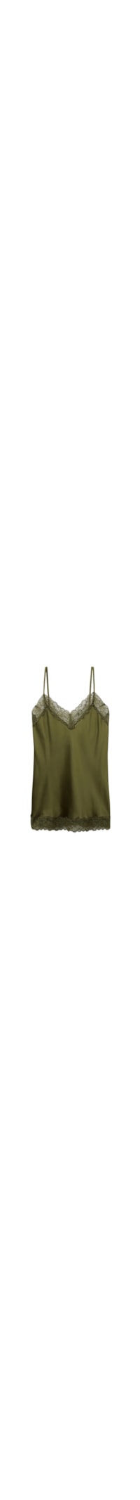 Regata em seda com decote em V, alças finas ajustáveis e detalhes em renda no decote e na bainha. Perfeito como lingerie ou com um casaco. A modelo tem 179 cm de altura e veste tamanho P.