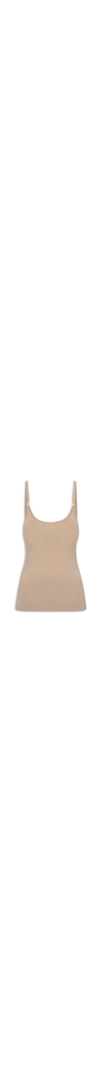 A regata marrom é confeccionada em malha com média elasticidade. A peça possui decote redondo, alças finas com regulagem, caimento ajustado ao corpo, bojo embutido e barra com acabamento simples.