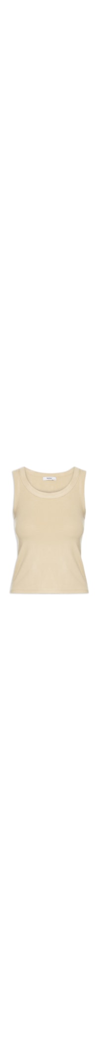 A regata bege é confeccionada em malha canelada com alta elasticidade. A peça justa ao corpo possui decote em U frontal, alças médias e cavas regulares.