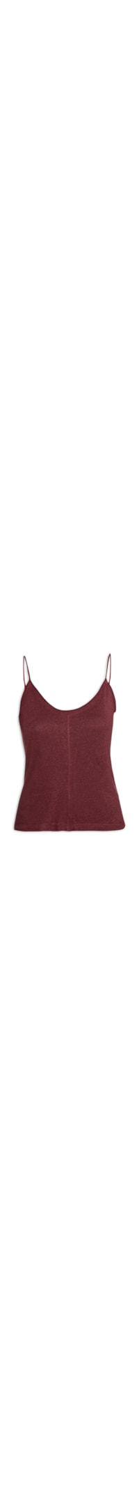 A regata vinho é confeccionada em malha com toque de linho. A peça possui decote frontal e posterior em U, alças finas, cavas regulares, transparência, recorte frontal e posterior, cavas e decotes com acabamento em corte à fio, shape solto, caimento reto e acabamento pespontado.