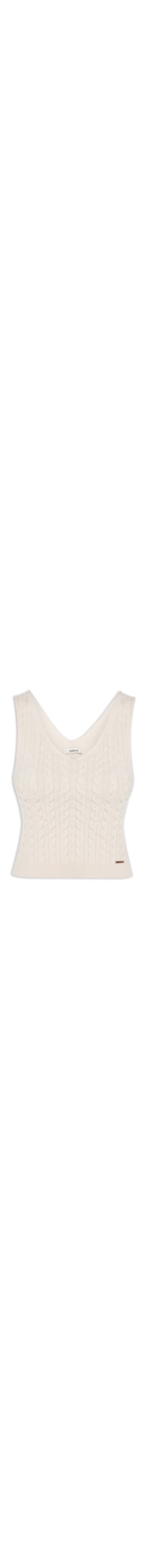 A regata bege é confecciona por tricot com superfície texturizada e alta elasticidade. A peça solta ao corpo possui decote v, alças médias, tag da marca metalizada aplicada na barra frontal e comprimento cropped*.