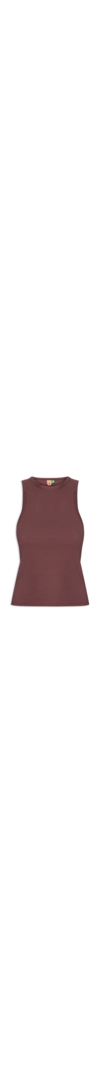 A regata marrom é confeccionada em malha com superfície canelada e média elasticidade. A peça justa ao corpo possui decote redondo, alças médias e cavas estendidas.